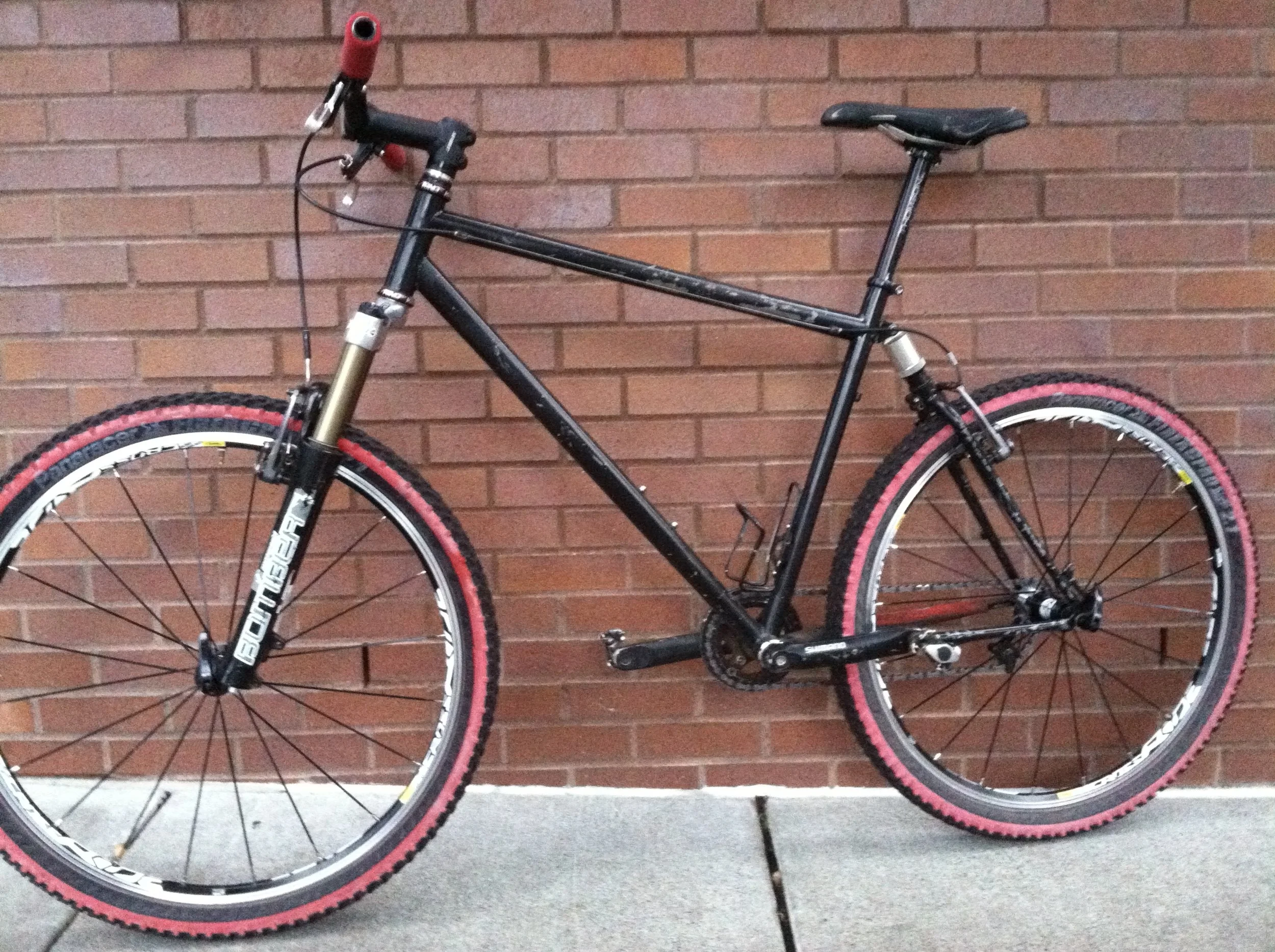 I bought this bike from a friend back in 2006. He bought it new and quickly converted it to a singlespeed and painted it matte black. I picked up the frame which came with a Chris King headset, crankset (I forget what was even on there then), chain tensioner, and Bontrager rear wheel. I was on my own for the rest. I had most everything else I needed at home from other janky bikes to complete the build other than forks. I ordered those and headed out of town for a conference in Las Cruces, New Mexico (I was living in Tucson at the time).